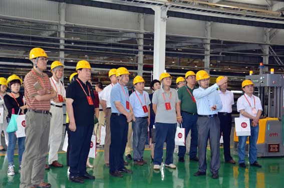 The research group visited the intelligent unmanned factory comprehensive information management area, the intelligent three-dimensional warehouse, the new product test area, the automatic coating production line, the long rod robot workstation and the small robot workstation.