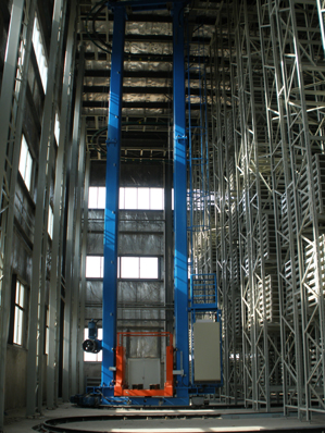 轉(zhuǎn)彎堆垛機(jī)由彎軌將兩個(gè)相鄰巷道聯(lián)通,與單深或者雙深位貨架配合,在出入庫(kù)效率較低的情況下可以減少堆垛機(jī)的數(shù)量,進(jìn)而減少工程投資。