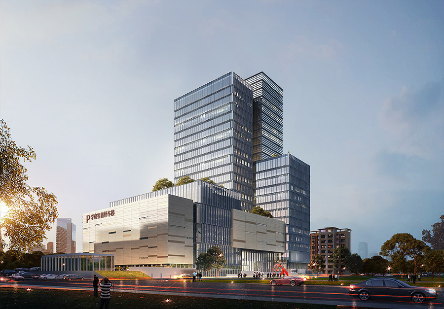 該項目主要包括1幢13層(局部11層)的停車樓和1幢21層的商務(wù)樓,總用地面積約22.2畝,總建筑面積70751.67㎡,停車位共計1204個。其中停車樓為鋼結(jié)構(gòu),建筑面積17908.41㎡,地下建筑3層,地上建筑13層(局部11層),停車樓內(nèi)可停918輛,室外可停118輛;商務(wù)樓為框架剪力墻結(jié)構(gòu),建筑面積為52843.26㎡,地下兩層可停車168輛,地上部分共21層,建筑總高度為99.2米。