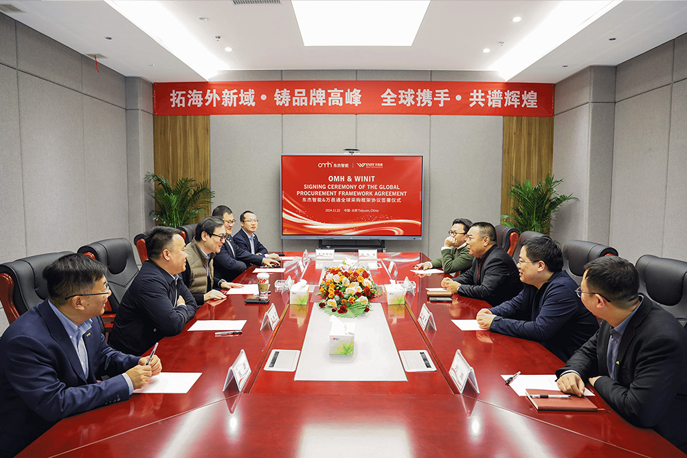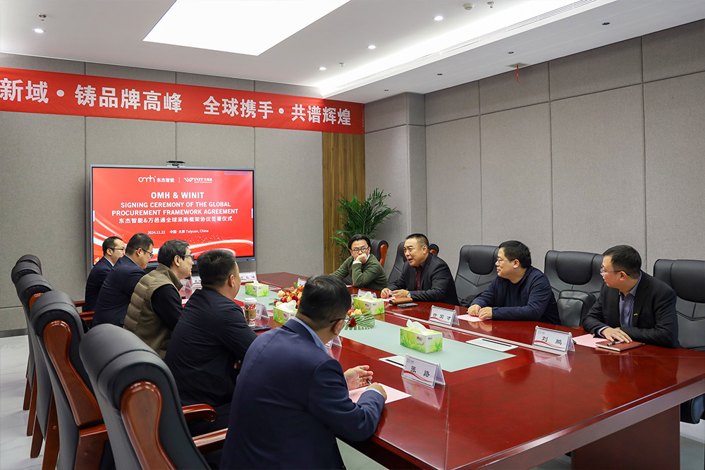 簽署儀式上,雙方代表在熱烈的掌聲中完成了合同簽署,并合影留念。這次簽署儀式的成功舉行,標志著東杰智能與萬邑通的合作進入新階段,也為雙方未來在更多領域的合作奠定了堅實的基礎。
